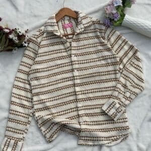 White and Beige Old money full sleeve shirt