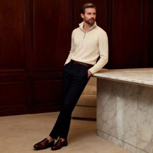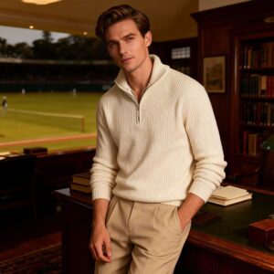 amazing cotton and acrylic fabric half zipper sweater good for winter and perfect style as old money style