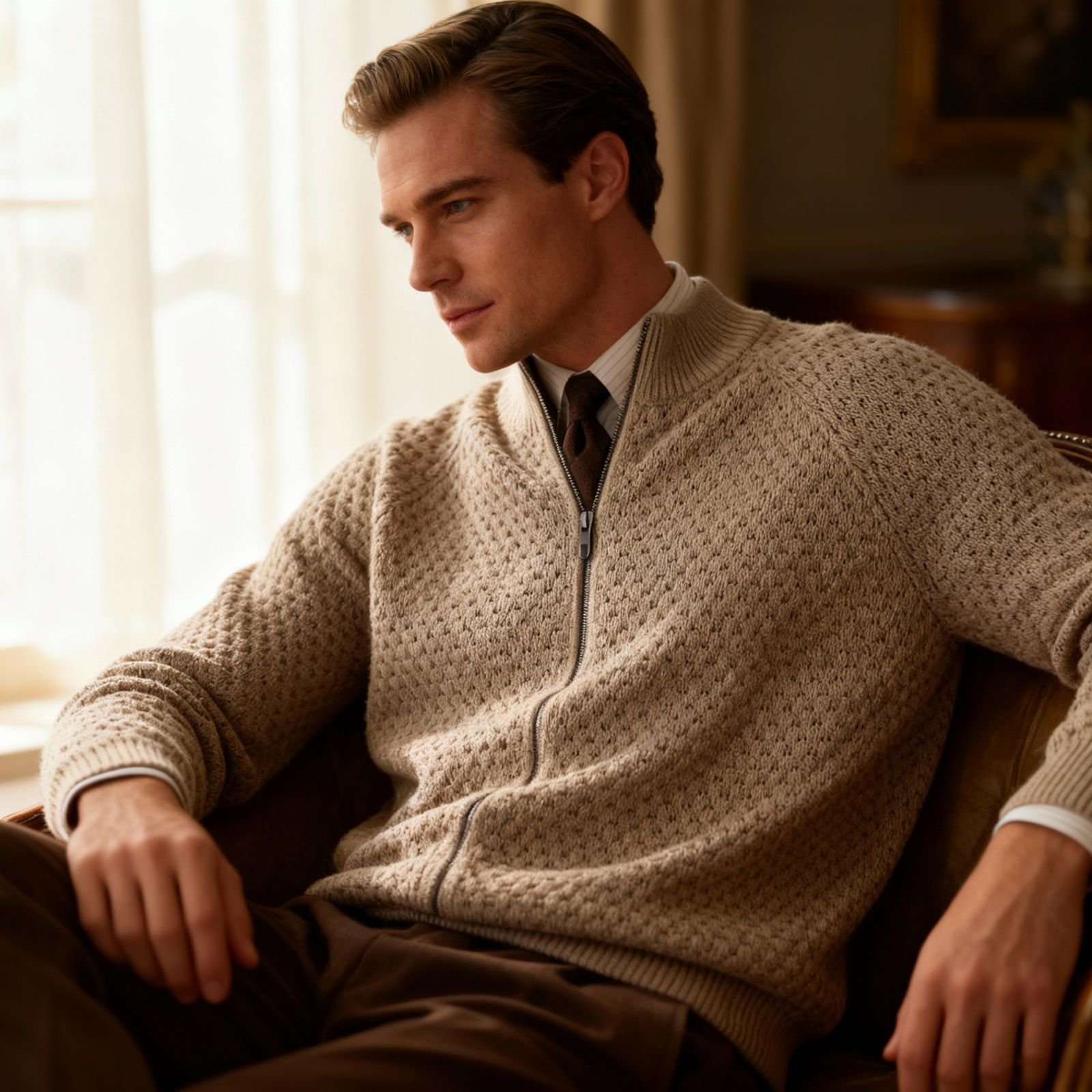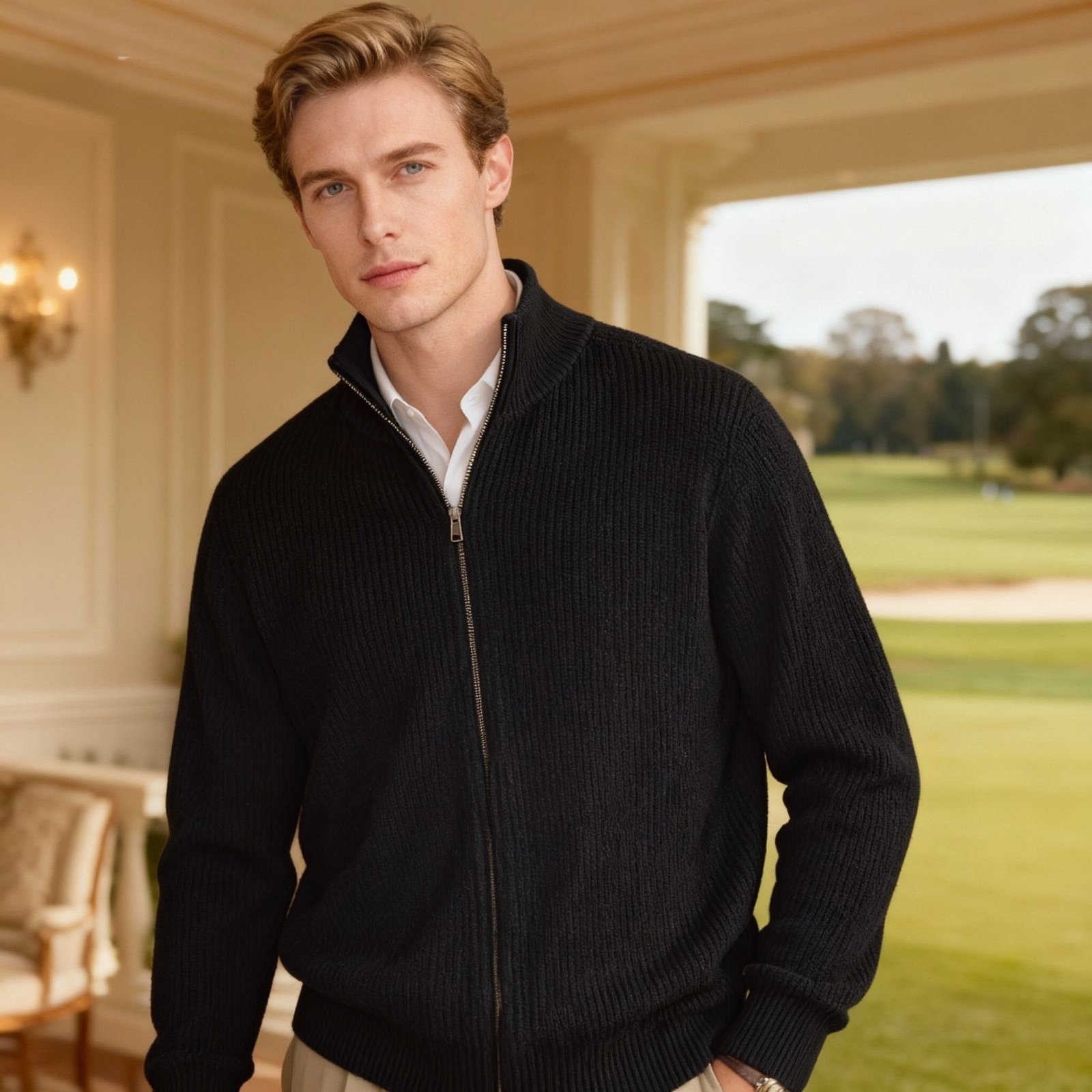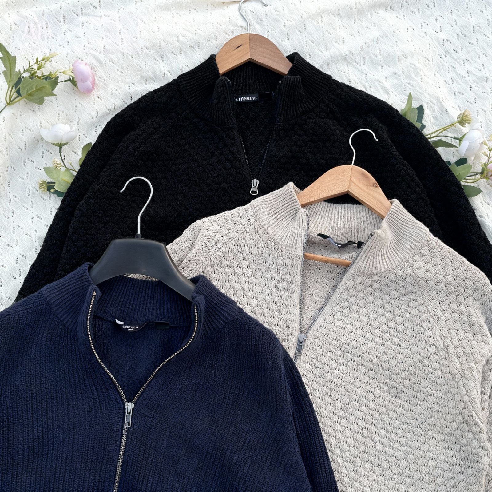 premium half zipper cable knit woollen full sleeve sweater